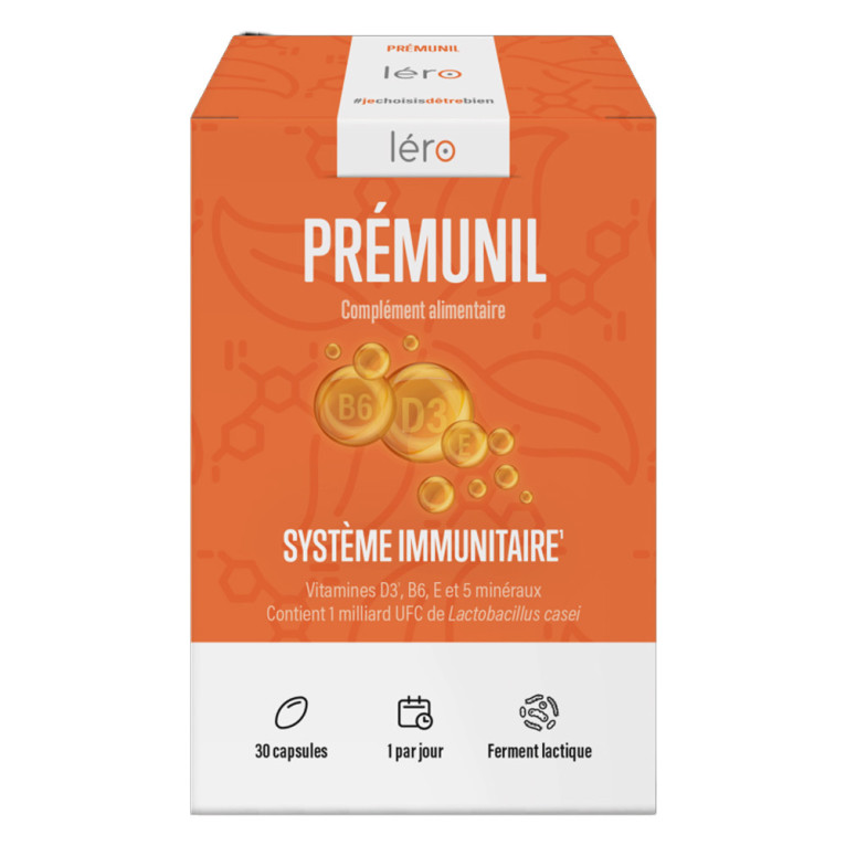 Léro Prémunil est une association spécifique : De vitamine D3, B6, du Fer, du Zinc, du Cuivre, de la Vitamine E, du Manganèse, du Lactobacillus Casei (souches apportées dans une matrice gastro-résistante).La vitamine D3 contribue au fonctionnement normal du système immunitaire.