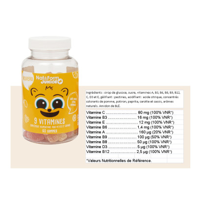 NAT&FORM JUNIOR+ 9 VITAMINES 60 GOMMES est un complément alimentaire en vente en ligne, sur le site de votre parapharmacie à prix discount.