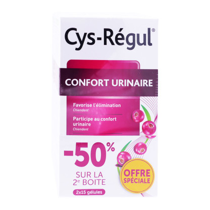 NUTREOV CYS REGUL CONFORT URINAIRE LOT DE 2X15 GELULES est disponible en vente en ligne à prix discount.