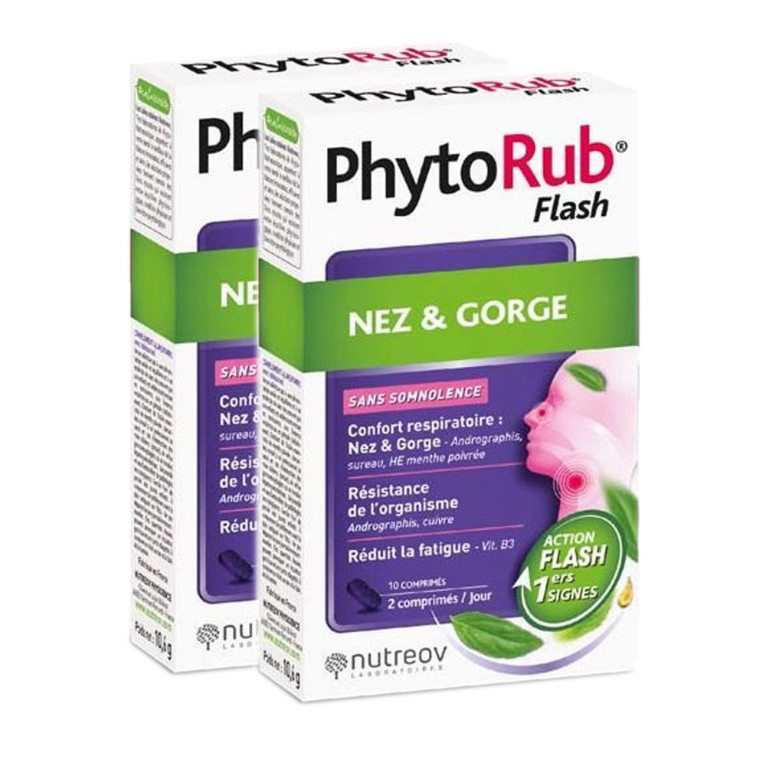 NUTREOV PHYTO RUB FLASH LOT DE 2X10 COMPRIMES est disponible en vente en ligne à prix discount.