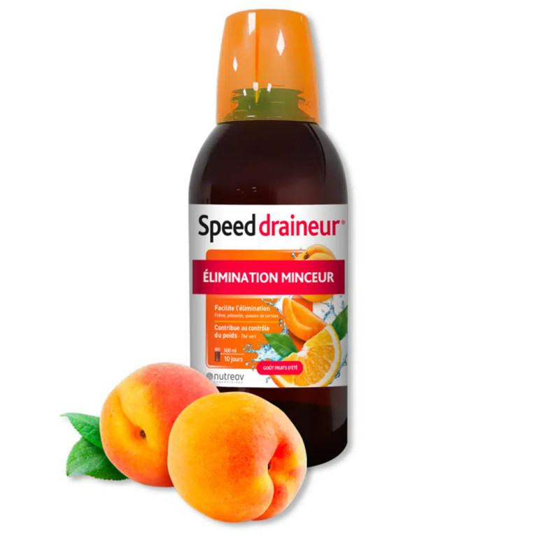 Speed Draineur Élimination Minceur discount du laboratoire NUTREOV, le complément alimentaire composé d’extraits de plantes et caféine en solution buvable, dans votre parapharmacie en ligne à prix discount. Goût fruits d’été