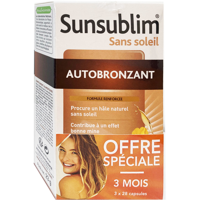 Sunsublim Sans Soleil Autobronzant du laboratoire NUTREOV, le complément alimentaire composé de vitamines, en capsules, dans votre parapharmacie en ligne à prix discount.