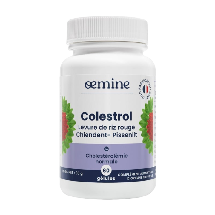 COLESTROL LEVURE DE RIZ ROUGE discount du laboratoire OEMINE NATURE, est un complément alimentaire à base de levure de riz rouge, de chiendent et de pissenlit sous forme de 60 gélules, dans votre parapharmacie en ligne à prix discount.