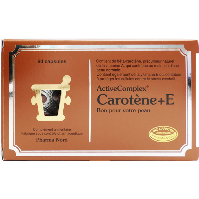 ACTIVE COMPLEX-CAROTENE + E des Laboratoires PHARMA NORD à prix discount, un complément alimentaire à base de bêta-carotène et de vitamine E, bon pour votre peau, dans votre parapharmacie en ligne à prix discount.
