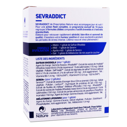 PRESCRIPTION NATURE SEVRADDICT 60 GÉLULES est disponible en vente en ligne sur le site de votre parapharmacie à prix discount.