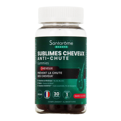 SANTAROME BEAUTE SUBLIMES CHEVEUX ANTI-CHUTE 30 GUMMIES, en vente en ligne sur le site de votre parapharmacie à prix discount, est un complément alimentaire de qualité supérieure qui aide à lutter contre la chute des cheveux.