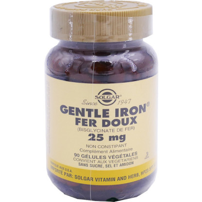 SOLGAR GENTLE IRON FER DOUX 25MG 90 GELULES