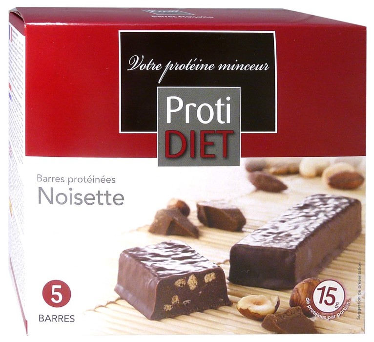 PROTIDIET est une marque minceur reconnue dans le monde de la santé, qui propose des produits de régimes hyperprotéinés (potages, crèmes desserts…) afin d’aider à la perte de poids lors d’un régime équilibré sans perdre de masse musculaire. Les barres protéinées noisette est un en-cas diététique hypocalorique hyperprotéiné, riche en vitamines, minéraux et en protéines, est pauvre en matières grasses et en sucres afin d’éliminer la masse graisseuse en excès dans l’organisme, pour des résultats efficaces au cours d’un programme minceur. Leur bon goût à la noisette fera fondre de plaisir tout en prenant soin de sa ligne ! En 1 semaine, les kilos superflus disparaissent (jusqu’à 4,5kg) et le poids va se stabiliser.