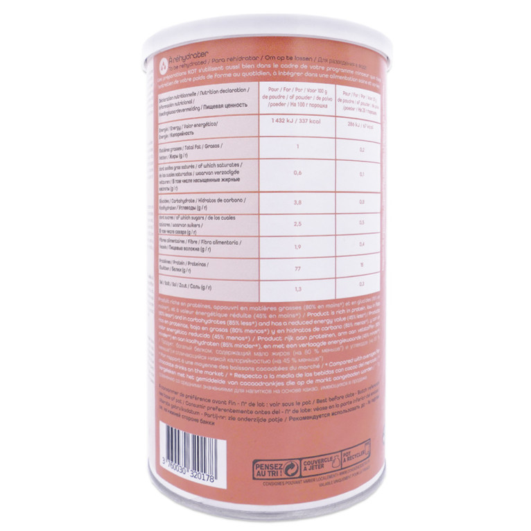 KOT Nutrition, reconnu pour ses solutions nutritionnelles innovantes, propose une préparation source de protéines avec une faible teneur en sucres et en matières grasses. Chaque dosette de 23 g offre une valeur énergétique de 67 kcal. Les protéines participent au maintien de la masse musculaire, tandis que la faible teneur en sucres et matières grasses aide au contrôle du poids. Découvrez le plaisir d'une boisson savoureuse tout en respectant votre équilibre nutritionnel.