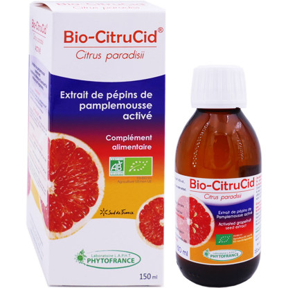 L’extrait de pépins de Pamplemousse BioCitrucid discount, le complément alimentaire en solution buvable à base d'extrait de pépin de pamplemousse, dans votre parapharmacie en ligne à prix discount.