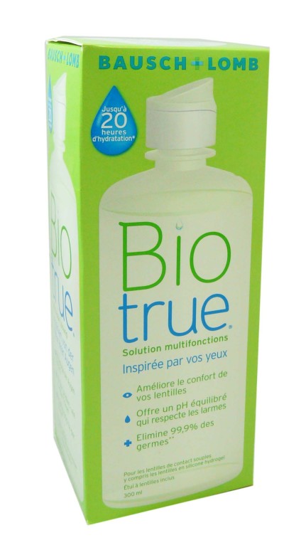 Bio true multifonction de BAUSCH&LOMB est une solution de nettoyage pour les lentilles de contact souples y compris en silicone hydrogel.