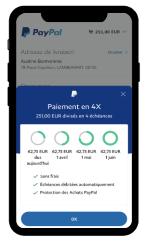 Выберите Paypal в качестве способа оплаты во время покупки и получите оплату четырьмя частями: