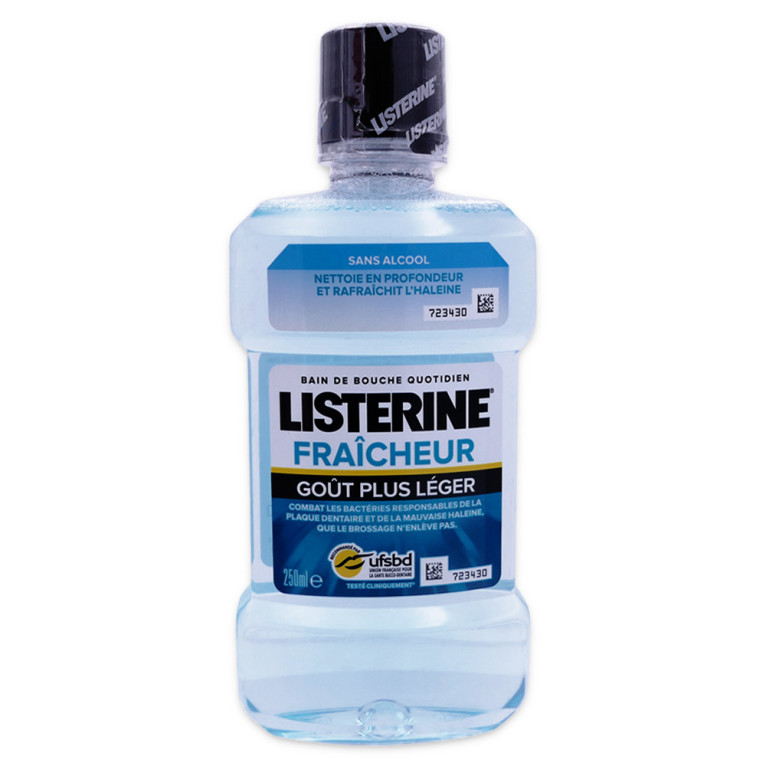 LISTERINE n°1 en pharmacie et parapharmacie, propose une gamme complète de bains de bouche, contribuant à améliorer l’hygiène bucco-dentaire au quotidien. Le bain de bouche Fraîcheur intense de LISTERINE est spécialement conçu pour rafraîchir l’haleine et éliminer les bactéries responsables de la plaque dentaire en respectant l’équilibre de la flore buccale et sans colorer les dents. LISTERINE Fraîcheur intense, composé de salicylate de méthyle, d’huiles essentielles (Thymol, Eucalyptol, Menthol) et utilisé en complément du brossage quotidien, élimine jusqu’à 99% des bactéries buccales délétères notamment dans les endroits difficilement atteignables par la brosse, prévient et diminue la plaque dentaire.