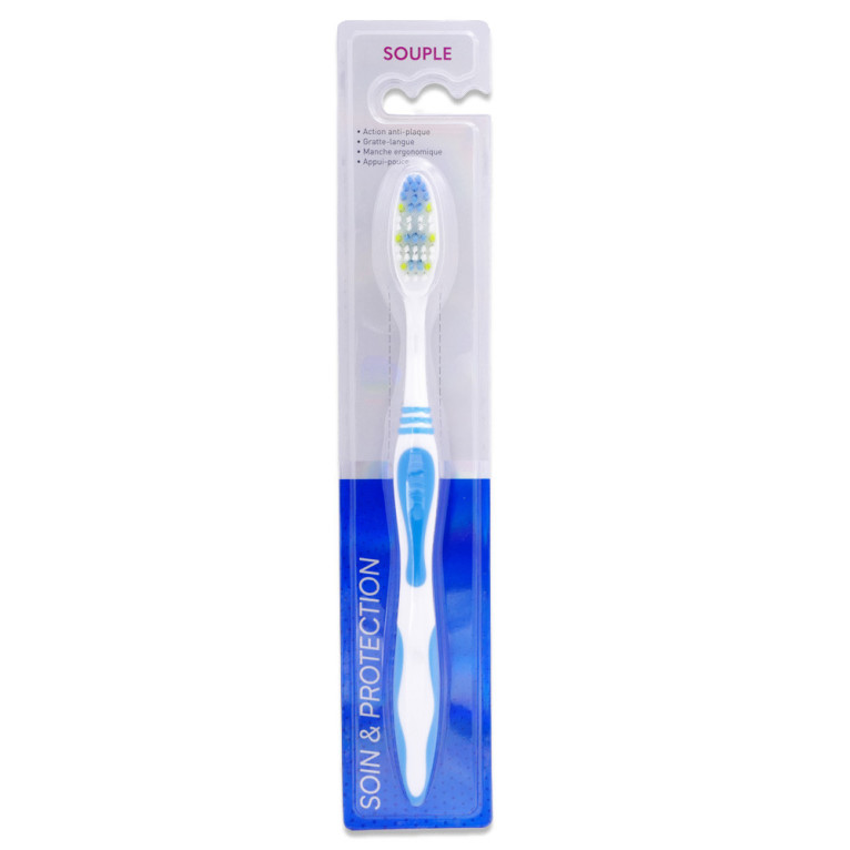 Conçue par Pharmascience Santé, cette brosse à dents se distingue par sa tête fine et ses brins souples, permettant un nettoyage en douceur tout en atteignant les zones difficiles d'accès. Les brins souples sont en nylon, un matériau reconnu pour sa flexibilité et sa capacité à éliminer efficacement la plaque dentaire sans agresser les gencives.