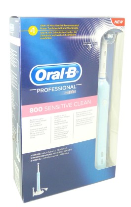 Oral-B est leader sur le marché international de la brosse à dents avec une large offre de produits destinés à l’hygiène bucco-dentaire, si performants que les dentistes eux-mêmes utilisent la marque Oral-B pour leur usage personnel. Oral-B a conçu une brosse à dentsélectrique : 800 Sensitive Clean, avec un système de nettoyage qui effectue 8800 oscillo-rotations /minute avec 20 000 pulsations pour un nettoyage en profondeur des dents et une élimination totale de la plaque dentaire. Le manche ergonomique de cette brosse assure une bonne prise en main, et le minuteur intégré permet un brossage de 2 minutes, durée recommandée par les dentistes pour assurer un nettoyage bucco-dentaire efficace. Les poils extra-souple de la brossette offre un brossage tout en douceur et respectent les gencives sensibles. La couleur bleue des brins s'estompent pour indiquer le niveau d'usure. Brosse à dents rechargeable, batterie Ni-MH.