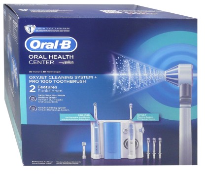 Le système de nettoyage OXYJET d’ORAL B à prix discount dans votre parapharmacie en ligne, un appareil de haute technologie pour une hygiène dentaire irréprochable. + 1 brosse à dents électrique ORAL B PRO 1000.