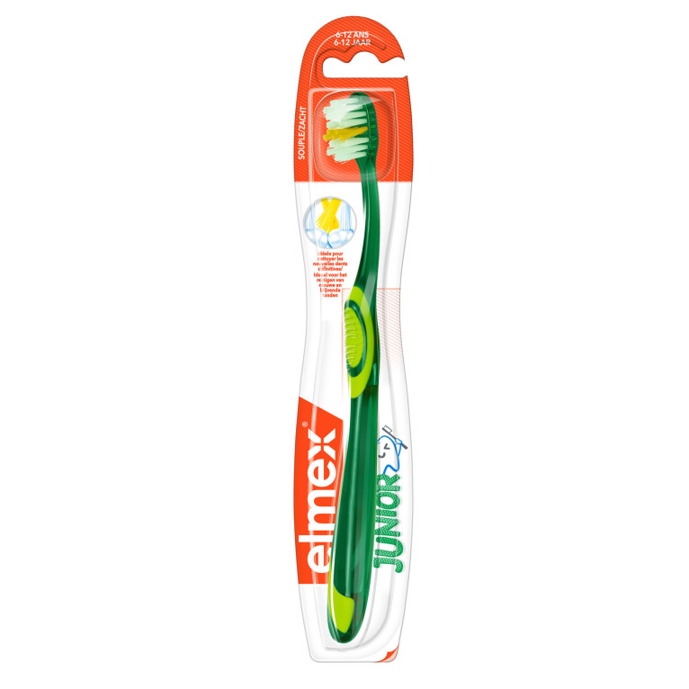 Brosse à dent Junior d’ELMEX, la brosse à dents souple adaptée pour les petits de 6 à 12 ans.