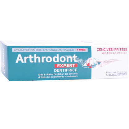La marque ARTHRODONT des laboratoires PIERRE FABRE est composée de soins dentaires destinés aux gencives sensibles pour les rendre plus fortes et apaisées. ARTHRODONT Expert est un dentifrice composé d’extrait de réglisse (acide glycyrrhétinique), de silice et de digluconate de chlorhexidine. Il va nettoyer les dents grâce à son action abrasive légère, lutter contre la plaque dentaire causée par la multiplication des bactéries à la surface des dents, adoucir et apaiser les inflammations des gencives irritées, pouvant être la cause d’intervention dentaire tel que les détartrages. Les gencives seront plus fortes et saines.