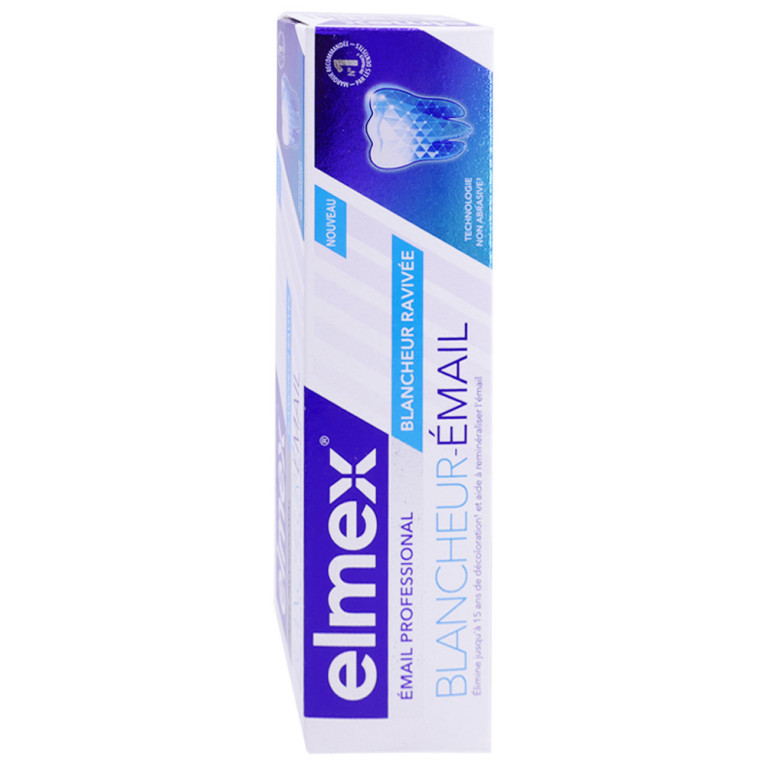 Ce dentifrice de la marque Elmex est spécialement formulé pour éliminer les taches et prévenir leur réapparition, tout en renforçant l'émail des dents.Le dentifrice Elmex Blancheur contient du fluorure d'amines Olafluor, un ingrédient actif qui renforce l'émail des dents et les protège contre les caries. Sa formule douce et non abrasive permet un nettoyage en profondeur tout en respectant l'émail des dents. En l'utilisant régulièrement, vous retrouverez un sourire éclatant et une sensation de fraîcheur durable