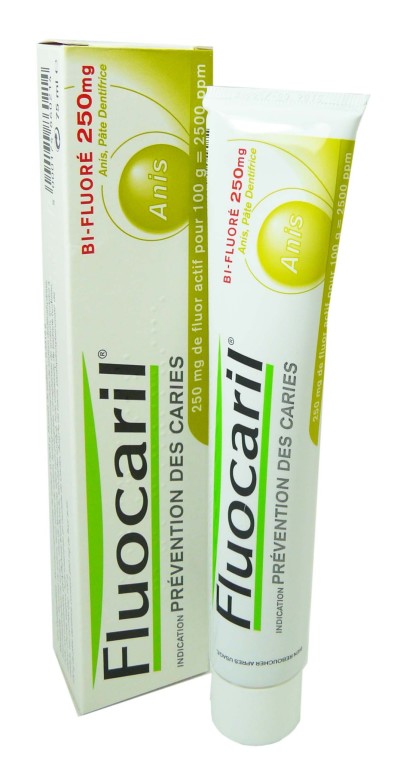 Depuis plus de 60 ans, FLUOCARIL développe des produits d’hygiène bucco-dentaire plébiscités par les professionnels de la santé dentaire, et propose une large gamme de soins conçus pour répondre à tous les besoins de la famille, qu’il s’agisse de soins d’hygiène quotidienne ou de soin plus spécifiques (dentifrices, bains de bouche, brosses à dents manuelles, accessoires interdentaires…). FLUOCARIL BI-FLUORE 250mg anis est un dentifrice composé de fluor, préconisé dans la prévention de la carie dentaire en brossages réguliers chez les adultes et les enfants dès 10 ans.