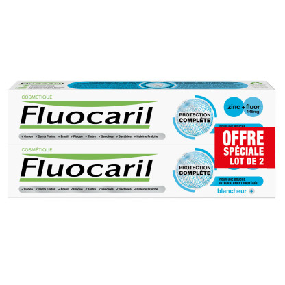 FLUOCARIL DENTIFRICE PROTECTION COMPLÈTE 2X75ML en vente en ligne, sur le site de votre parapharmacie à prix discount, est le dentifrice idéal pour une protection complète de vos dents.