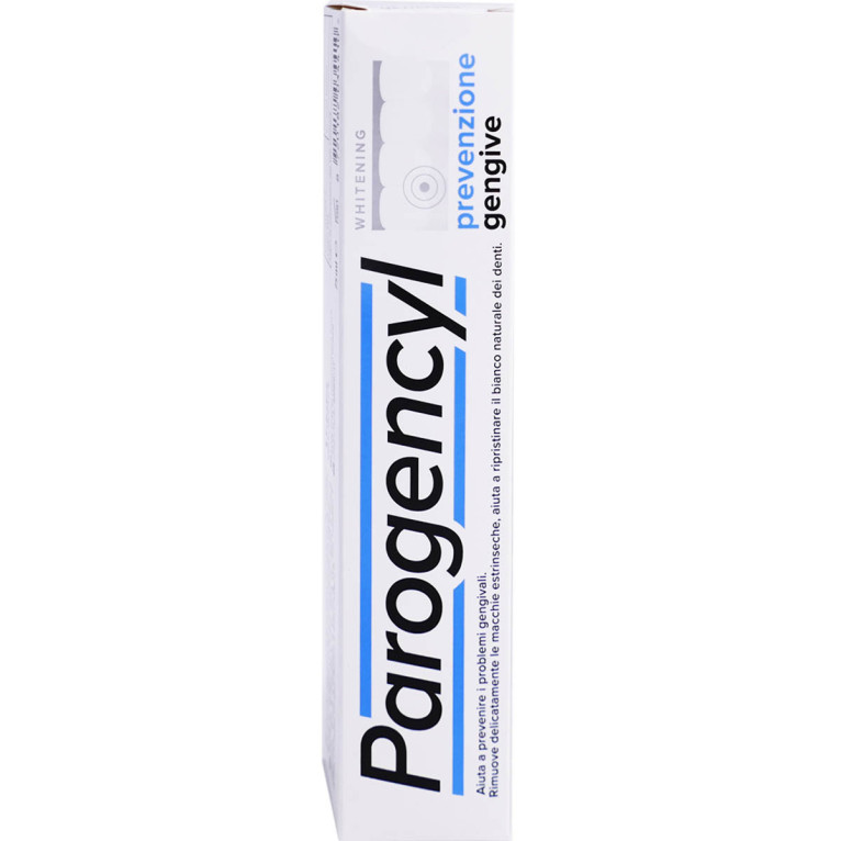 Le dentifrice Prévention Gencives Blancheur PAROGENCYL associe du zinc minéral à l'action antibactérienne, un ingrédient blancheur, et du Fluor. Le zinc minéral va permettre de lutter efficacement contre la plaque dentaire et réduire les risques d’inflammation gingivale. Un ingrédient blancheur va diminuer les taches alimentaires et va contribuer à rendre les dents plus blanches brossage après brossage. Le Fluor va aider à prévenir la formation des caries et renforcer l’émail.