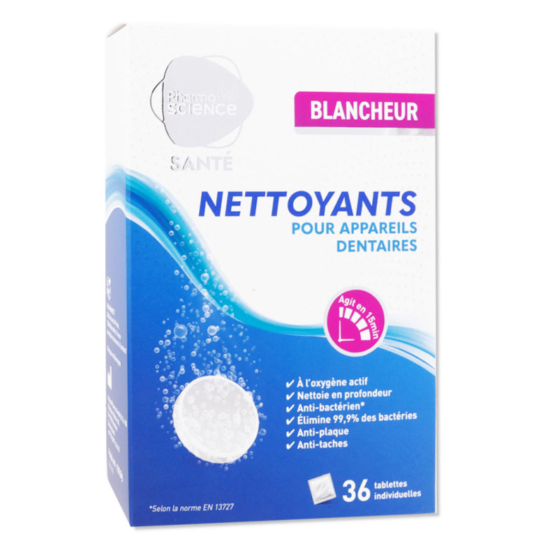 NETTOYANTS BLANCHEUR POUR APPAREILS DENTAIRES PHARMASCIENCE 36 TABLETTES