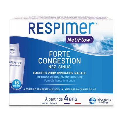 RESPIMER NETIFLOW FORTE CONGESTION NEZ-SINUS 16 SACHETS en vente en ligne sur le site de votre parapharmacie à prix discount.