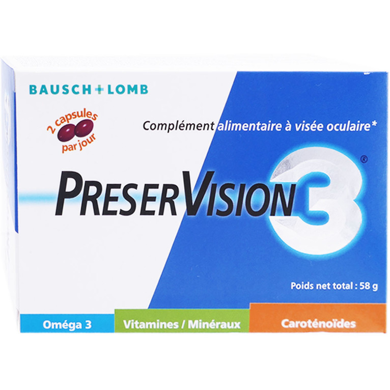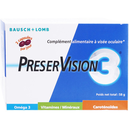 PreserVision 3 Stick, du laboratoire BAUSCH + LOMB, est un complément alimentaire composé des vitamines E et C, qui aident les cellules à lutter contre le stress oxydatif, et de zinc , qui contribue à des fonctions visuelles normales.