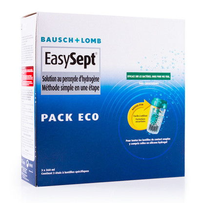 EASYSEPT discount de BAUSH&LOMB, la solution de nettoyage multifonctions au peroxyde d’hydrogène qui nettoie, décontamine et conserve les lentilles souples et rigides, dans votre parapharmacie en ligne à prix discount. Adapté pour les yeux sensibles et aux porteurs de lentilles allergiques aux conservateurs