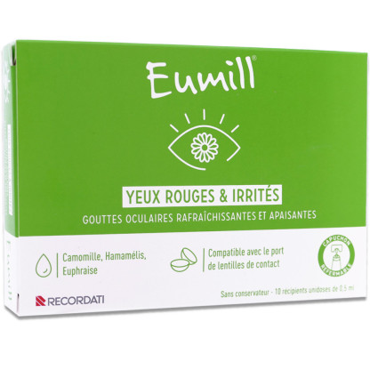 EUMILL GOUTTES OCULAIRES YEUX ROUGES & IRRITÉS est en vente en ligne sur le site de votre parapharmacie à prix discount, offrant une solution pour apaiser les yeux rouges et irrités, compatibles avec les lentilles de contact.