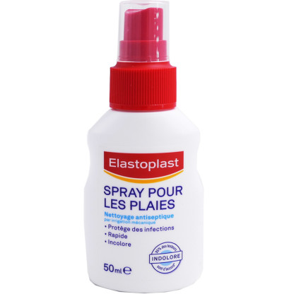 Spray pour les plaies discount d’ELASTOPLAST, la solution santé dans votre parapharmacie en ligne à prix discount, pour une solution efficace sous forme de spray pratique pour nettoyer protéger les blessures (coupures, écorchures, brûlures au 1er degré, brûlures mineures au 2nd degré ampoules ouvertes) de toutes les zones du corps.