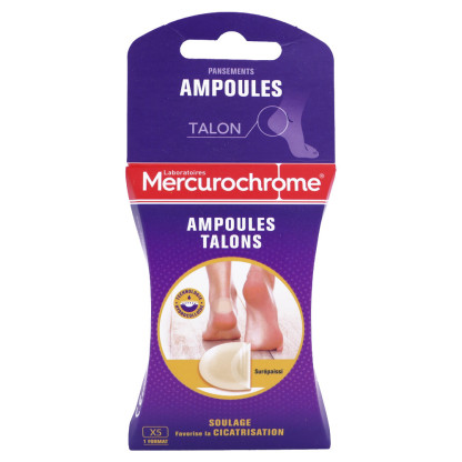 MERCUROCHROME AMPOULES TALONS 5 PANSEMENTS en vente en ligne, sur le site de votre parapharmacie à prix discount, est la solution idéale pour soulager vos pieds avec confort.