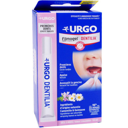 Le laboratoire URGO conçoit des produits pour le soin des mains, des pieds, des plaies cutanées et buccales, des vitamines... Filmogel Premières Dents est un dispositif innovant, un traitement liquide en stylo massant qui se transforme au contact de l’air en film fin et souple, pour soulager les gencives sensibles aux poussées des dents de lait. Composé d’extraits naturels de camomille et guimauve, il calme rapidement les gencives douloureuses lors de poussées dentaires, participe à la cicatrisation des gencives enflammées et agit sur les bactéries buccales. Sa formule au goût agréable, plaira aux bébés. Un tube contient environ 70 applications.
