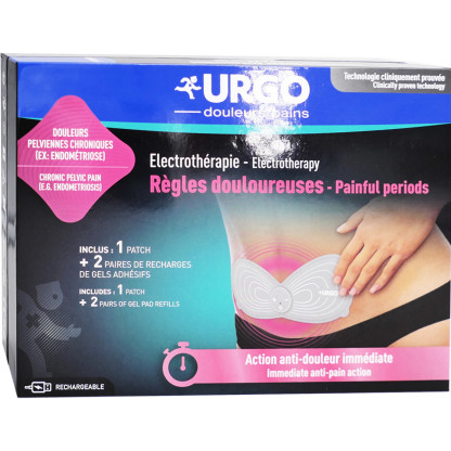 Patch d’électrothérapie Règles Douloureuses discount d’URGO, un dispositif médical pour une méthode simple d’utilisation et non médicamenteuse, pour soulager les douleurs pelviennes chroniques (ex : endométriose et du bas du ventre), et pour les dysménorrhées primaires, dans votre parapharmacie en ligne à prix discount.