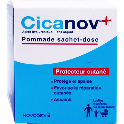 Pommade CICANOV+ discount de NOVODEX, un soin efficace sous forme de crème en sachets pratique pour protéger et régénérer les blessures superficielles, brûlure mineure zones irritées,…, dans votre parapharmacie en ligne à prix discount.