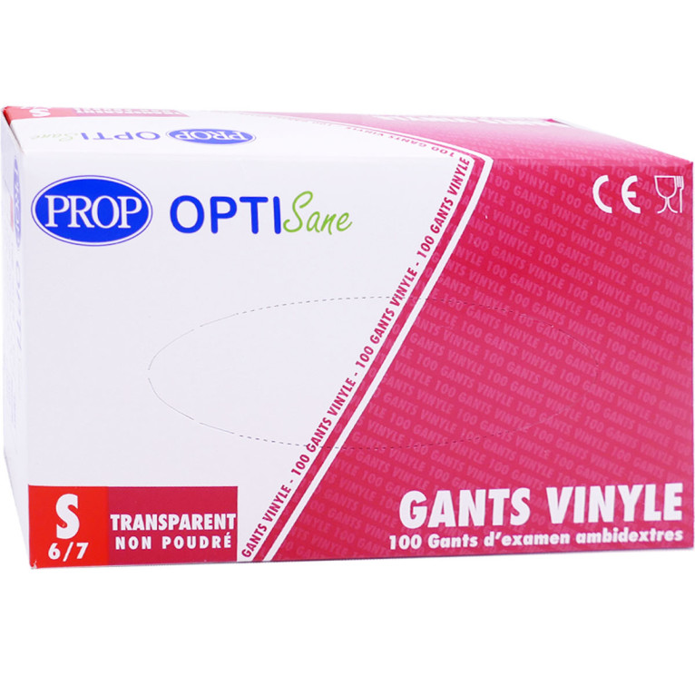 Les Gants Vinyle Transparent discount de OPTI SANE PROP, santé et sécurité dans votre parapharmacie en ligne à prix discount, pour ces gants en vinyle transparents non poudrés jetables à utiliser chez les personnes allergiques au latex, en milieu médical lors de risques mineurs. Taille S. Couleur Transparent