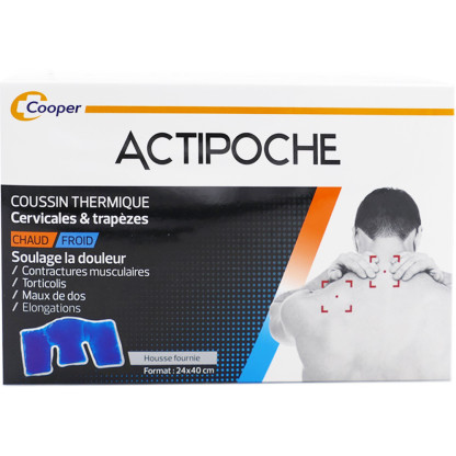 Actipoche Coussin Thermique discount de COOPER, la qualité et l’expertise dans votre parapharmacie en ligne à prix discount, pour un coussin thermique aux propriétés antalgiques qui agit par son action chaude ou froide des zones du corps tel que les cervicales et les trapèzes.