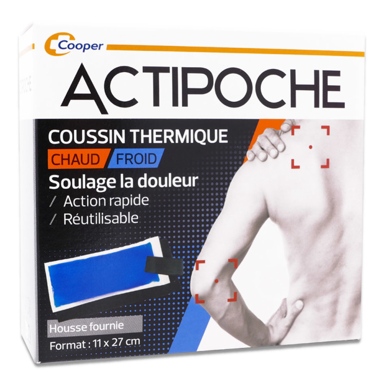ACTIPOCHE COUSSIN THERMIQUE CHAUD FROID 11X27CM est en vente en ligne sur le site de votre parapharmacie à prix discount, conçu pour offrir une solution de thermothérapie adaptée à un usage quotidien.