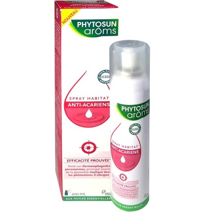 PHYTOSUN AROMS Spray Habitat Anti-acariens à prix discount dans votre parapharmacie en ligne, l’expertise en aromathérapie dans un dispositif à base d’huiles essentielles pour désinfecter l’atmosphère, les surfaces, les tissus,… et éliminer tous les acariens.