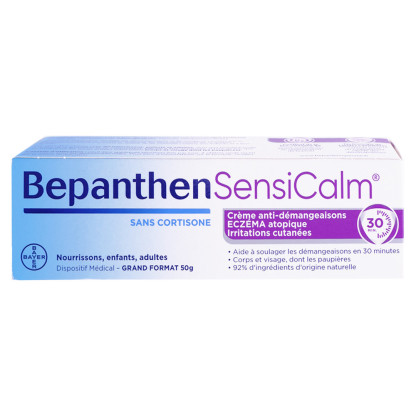 BepanthenSensicalm crème anti-démangeaisons, la crème qui répare et soulage les peaux ayant de l'eczéma léger à modéré de toute la famille (nourrisson à adulte).