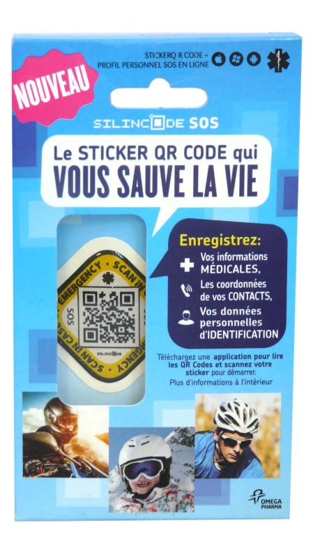 Le groupe Omega Pharma, acteur européen incontournable sur le marché des produits de santé familiale et de bien-être, développe de nombreuses marques reconnues pour la qualité, la sûreté et l’efficacité de leurs produits. Le sticker SILINCODE SOS permet grâce à la technologie QR CODE d’enregistrer les informations médicales principales de la personne (âge, allergies, traitement médical,…) afin de faciliter les démarches de soin d’un médecin ou de personnel de santé. Collé sur la peau, il est facile d’utilisation : en scannant le QR Code du sticker avec un smartphone ou une tablette, toutes les informations santé s’affichent à l’écran. Lorsqu’une personne scanne le QR Code, le contact enregistré reçoit par mail 2 messages : l’information que le bracelet a été scanné, et la géolocalisation approximative d’où le sticker a été scanné.