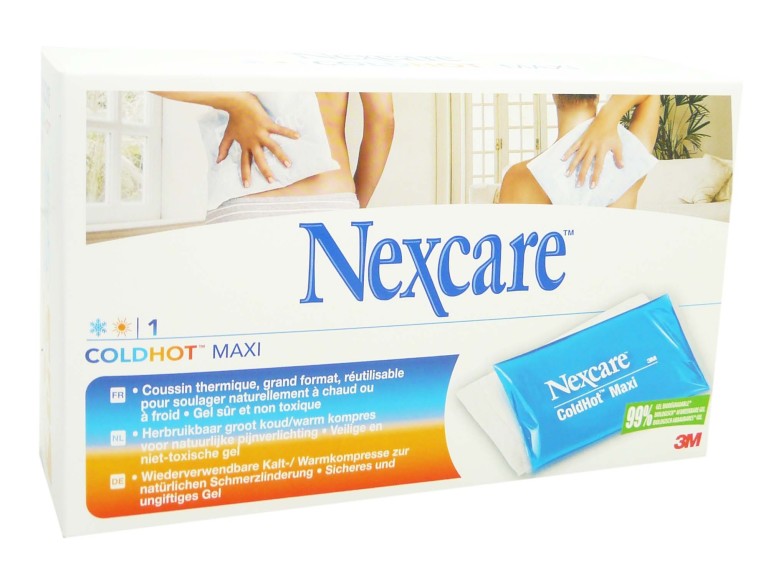 Depuis 1 siècle, 3M développe des produits destinés à faciliter la vie de millions de personnes. La gamme de produits de premiers soins 3M™ Nexcare™ propose des pansements adhésifs, des sparadraps, et des dispositifs conçus pour s’adapter aux différents types de peau et de plaies. NEXCARE ColdHot Maxi est un coussin thermique conçu pour apporter une solution antalgique non médicamenteuse aux douleurs des zones étendues : dos, ventre, cuisse, genou…. Il se place au réfrigérateur, au congélateur ou au micro-ondes et agit par le chaud ou le froid en fonction du type de douleur : chaleur pour calmer les contractures et les douleurs articulaires, froid pour soulager une inflammation, résorber un œdème ou un hématome. Une housse permet de maintenir efficacement et longtemps la température du coussin et éviter le contact direct avec la peau.