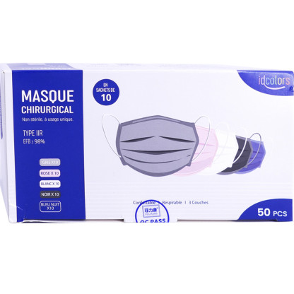 MASQUE CHIRURGICAL TYPE II R NORME EN 14683 X50 5 COULEURS