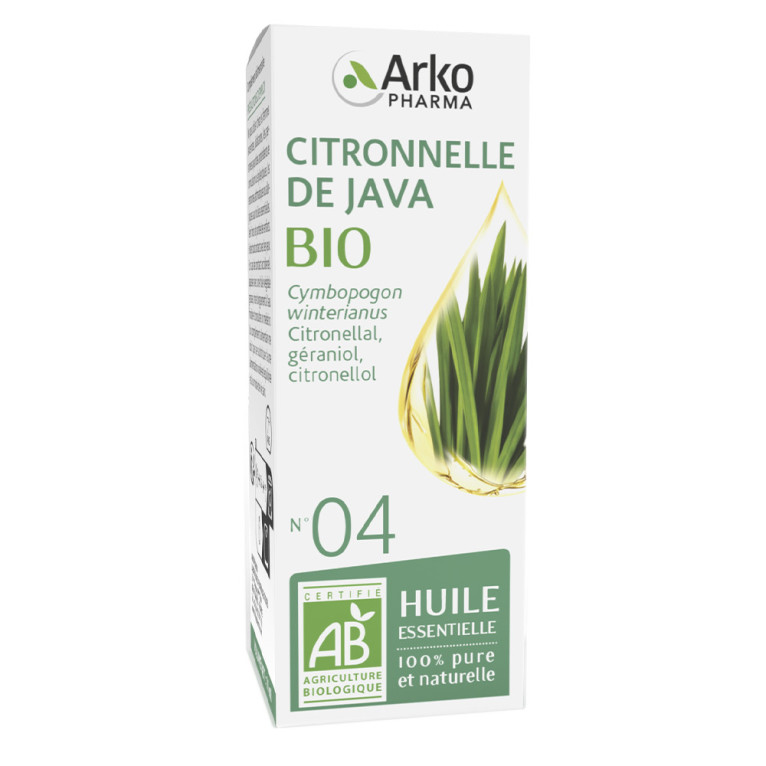 Citronnelle de Java N°04 huile essentielle 100 % pure et naturelle d'ARKOPHARMA, l'aromathérapie en complément alimentaire en vente dans votre parapharmacie en ligne à prix discount.