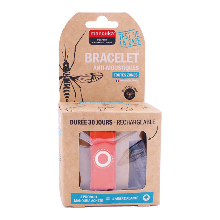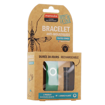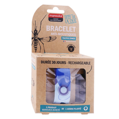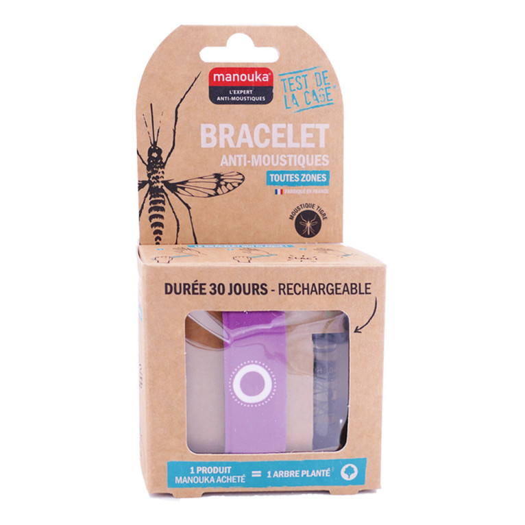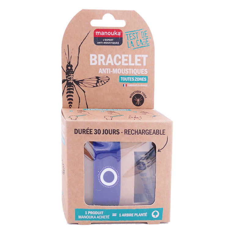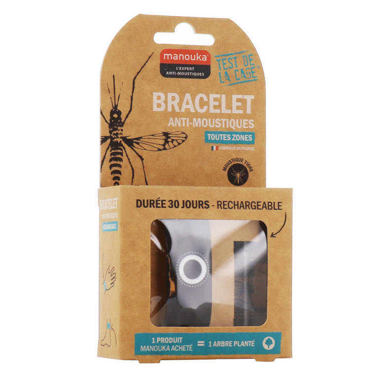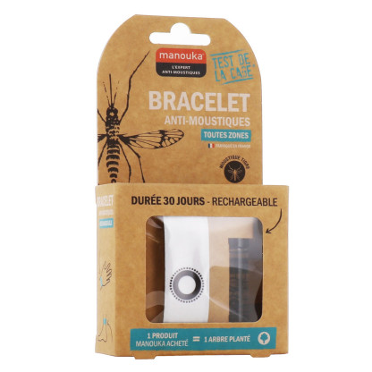 Le Bracelet Anti-moustiques Adultes de MANOUKA, qui se place facilement au poignet ou à la cheville, est un produit révolutionnaire à base d’IR3535 (10%) et de citriodiol (5%) sans DEET. Il assure une protection anti-moustique (y compris moustique tigre) très efficace, jusqu’à 6 heures et une action répulsive sur un rayon de 1 m. Efficacité prouvée cliniquement par le test de la cage.