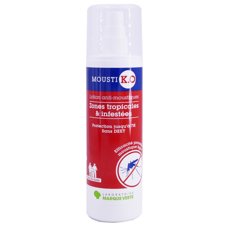 Marque Verte est une marque coopératrice créée par des pharmaciens pour offrir aux utilisateurs des produits de santé de grande qualité, au prix le plus juste. MOUSTI K.O de Marque Verte propose des gammes de produits répulsifs contre les nuisibles, notamment anti-moustiques. La lotion zone infestée, composée d’Icaridine dosée à 25%, est spécialement conçue pour assurer une protection efficace contre les piqures de moustiques potentiellement vecteurs du paludisme, de la dengue, de la fièvre jaune ou du chikungunya. Cette lotion agréablement parfumée, en vaporisateur sans gaz, protège jusqu’à 7 heures.