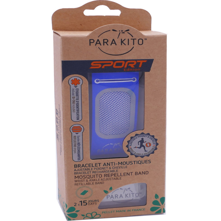 PARAKITO lance un bracelet ajustable poignées et chevilles, discret et stylée pour protéger toute votre famille des piqûres de moustiques : Le Bracelet Sport Bleu. Pratique, ce bracelet vous accompagne pendant votre séance de sport, possédant des bandes réfléchissantes et une étiquette d’identification, il améliore votre sécurité en bords de route. Ce bracelet ajustable possède un petit filet pratique où doit venir se glisser la plaquette protectrice. Cette plaquette dispose de la technologie de diffusion brevetée qui résiste à l’eau et qui vous assure une protection de 15 jours. Ce dispositif non toxique au biocide anti-moustiques naturel (Lavandin) vous protégera partout.