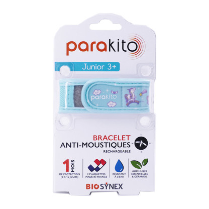 Le bracelet anti-moustiques rechargeable Parakito Junior 3+ est en vente en ligne sur le site de votre parapharmacie à prix discount. Protégez efficacement vos enfants des piqûres de moustiques avec ce bracelet pratique et rechargeable.