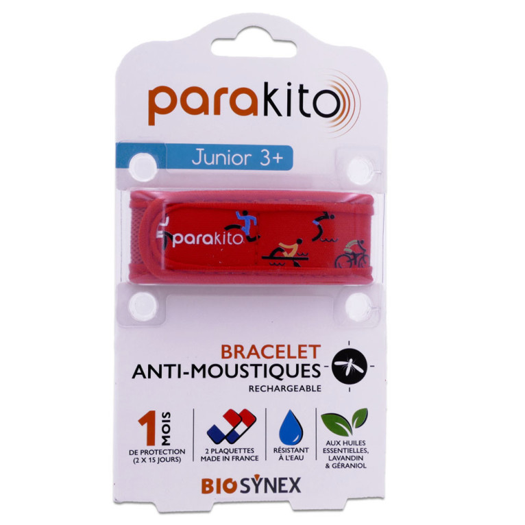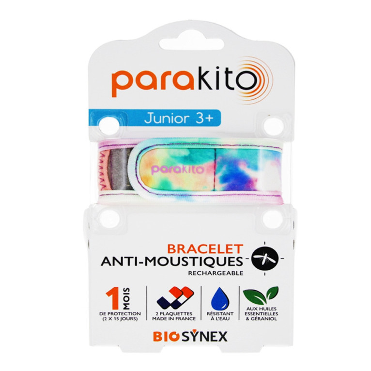 Le bracelet Parakito Junior 3+ est fabriqué par le laboratoire Parakito, spécialisé dans les produits anti-moustiques. Il est disponible en plusieurs coloris attrayants, ce qui permet à votre enfant de choisir son préféré.